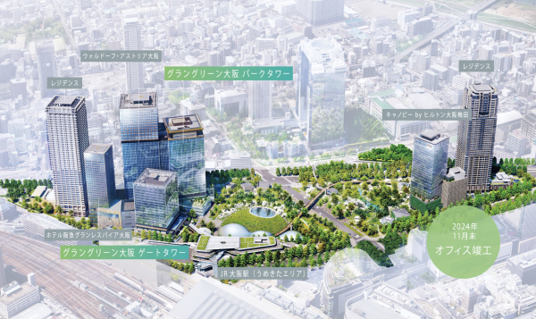 久保田選定作為新總公司的「Grand Green Osaka」,是位於JR大阪站北側、正在推動中的大規模都市再開發區域。其核心為約4.5公頃的都市公園「梅北公園」,周邊則集中配置辦公室、商業設施、飯店以及 MICE(會展)機能,形成複合型都市空間。