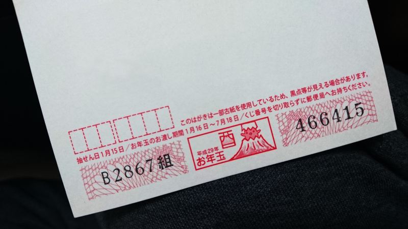 ↑ 附有抽獎號碼的「お年玉年賀状」